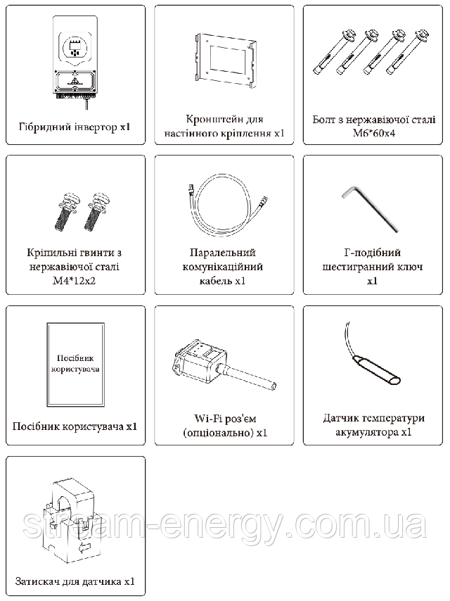 Перевірте обладнання перед встановленням. Будь ласка, переконайтеся, що нічого не пошкоджено в упаковування. Ви повинні були отримати елементи в наступному пакуванні: