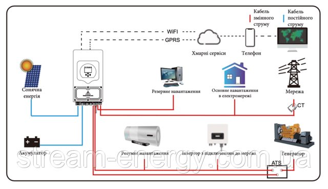 Проконсультуйтеся з вашим системним інженером щодо інших можливих системних архітектур в залежності від ваших вимог.Цей інвертор може живити всі види побутових або промислових приладів, включаючи прилади з електродвигунами, наприклад, холодильники та кондиціонери.